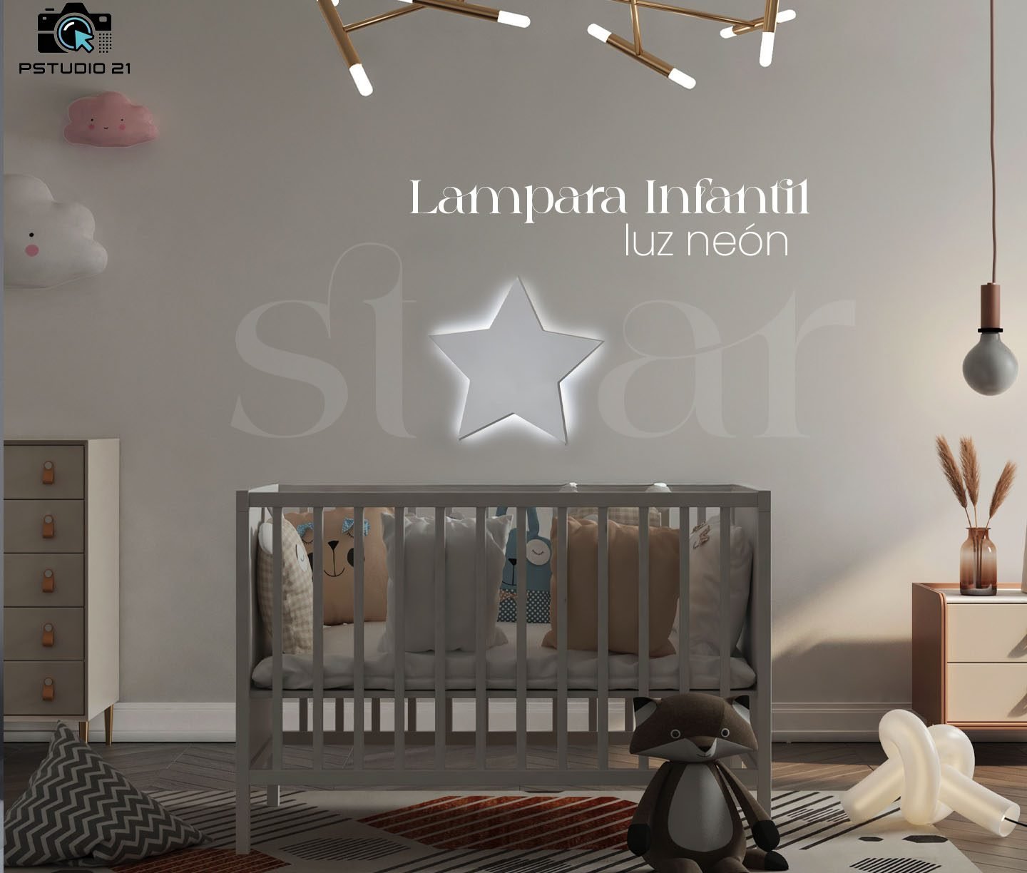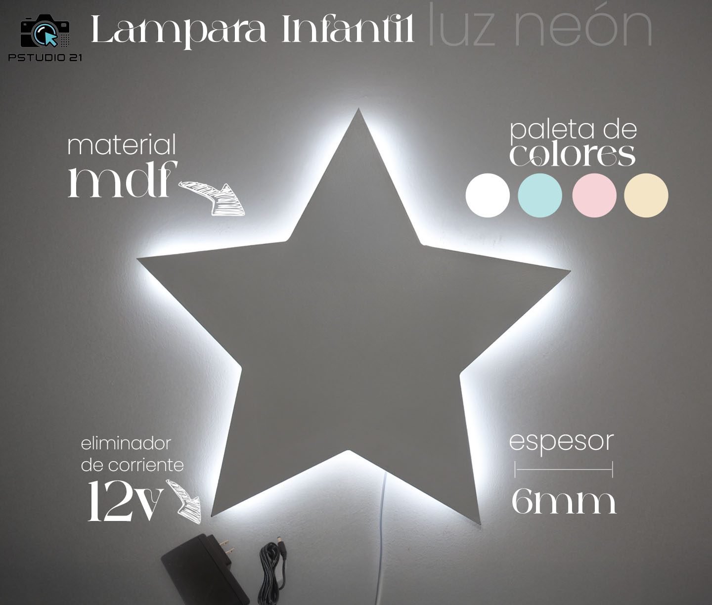 Nuestra lámpara decorativa está elaborada en MDF de 6 mm de espesor y cuenta con luz neón flex en la parte trasera, lo que crea un brillo suave y moderno perfecto para habitaciones infantiles. Disponible en encantadoras figuras como nube, dinosaurio, cohete, estrella y luna, cada diseño aporta un toque mágico que transforma cualquier espacio en un lugar acogedor y divertido. Es el complemento ideal para dar estilo y calidez al cuarto de los más pequeños.